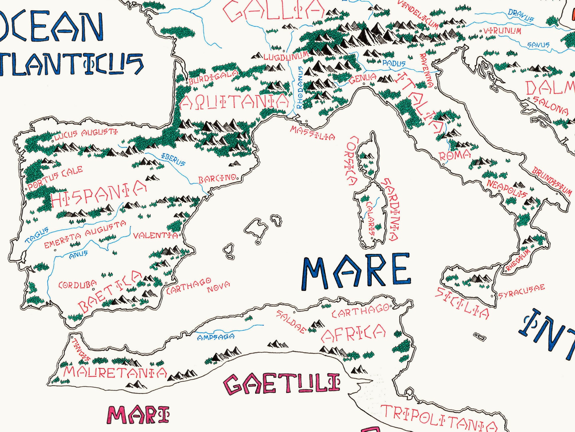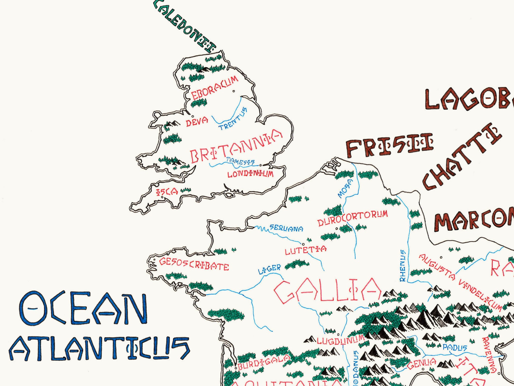 This high-quality print of my hand-drawn map presents the Roman Empire at its greatest territorial extent. Produced on premium heavyweight paper, it captures fine detail with clarity and offers a lasting, elegant finish — perfect for framing or display.
